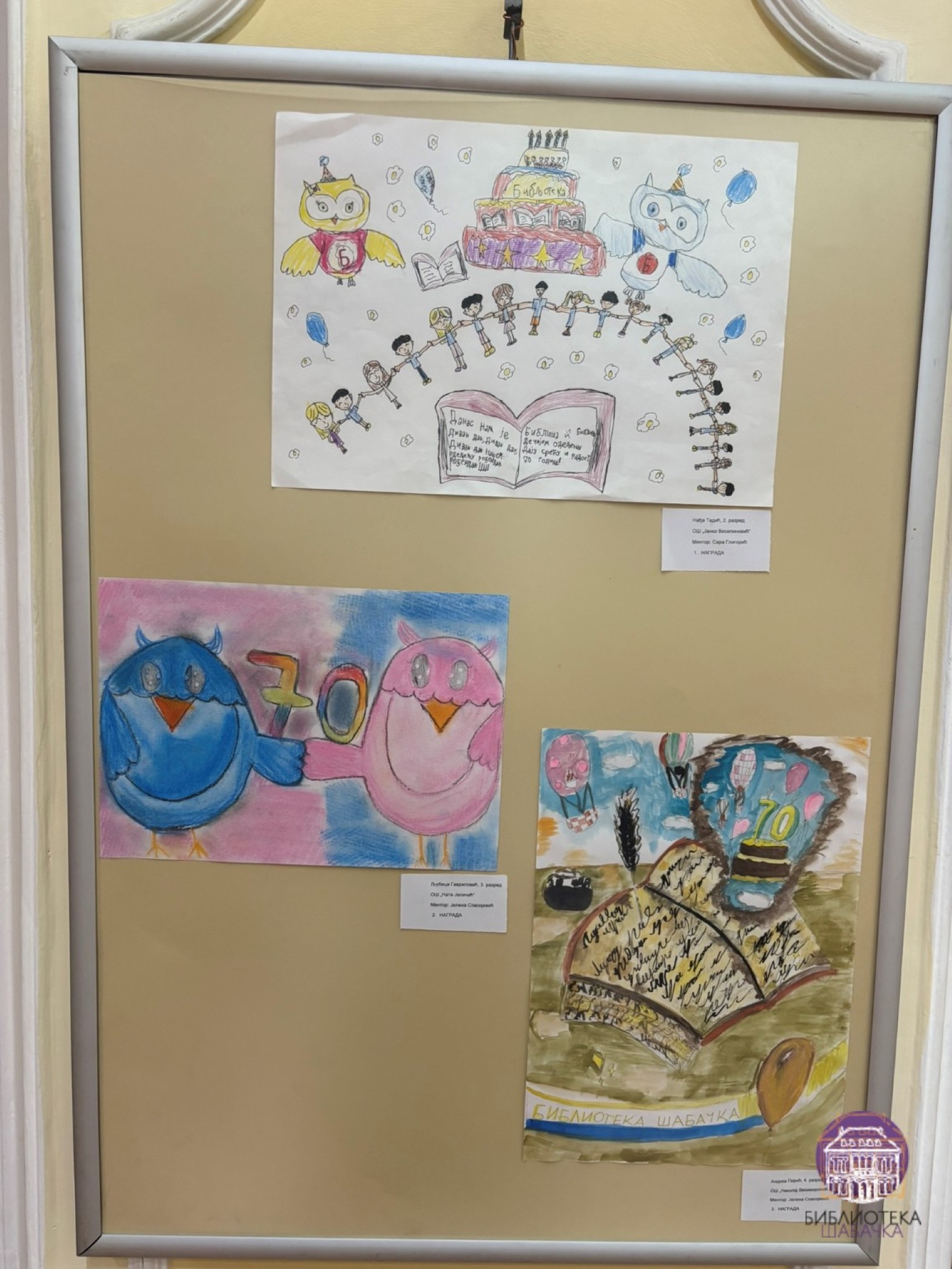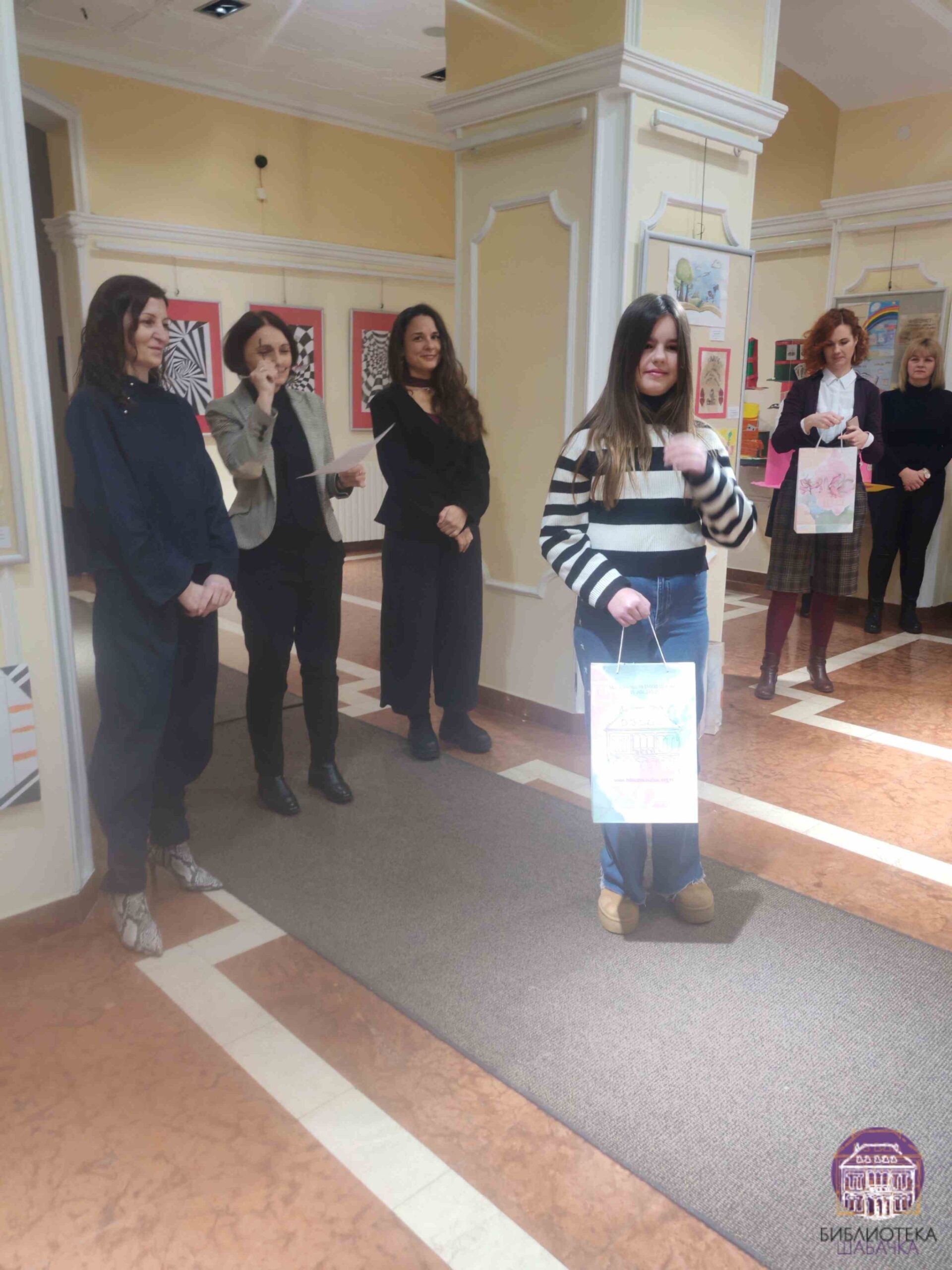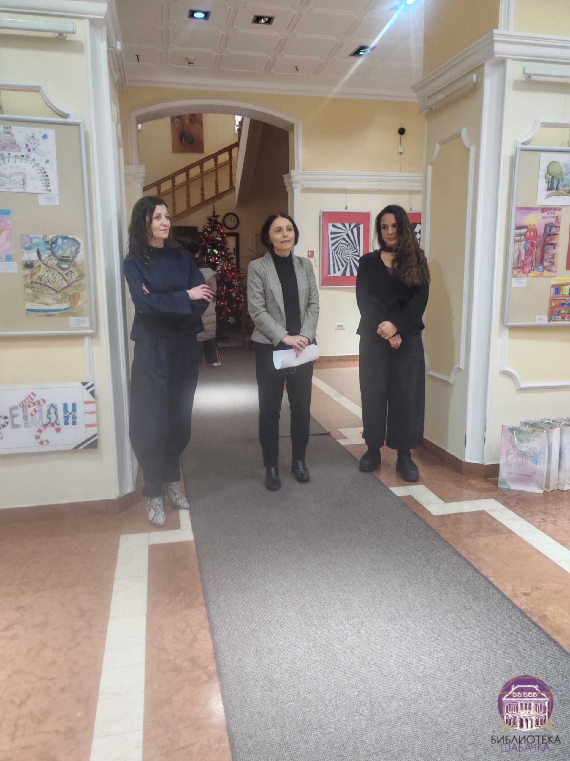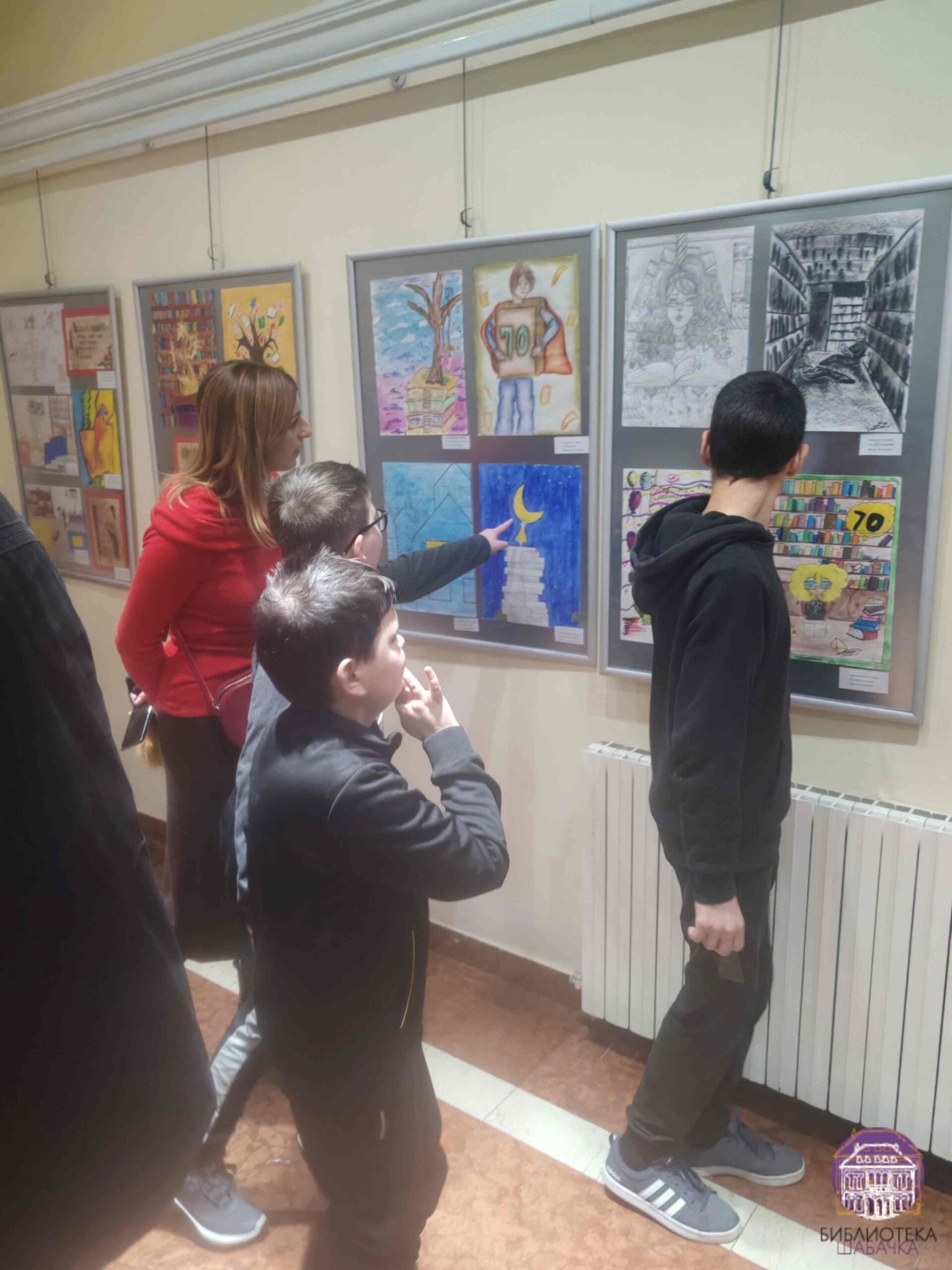 Присутнима су се обратиле Јелена Подгорац Јовановић, директорка Библиотеке шабачке и Биљана Богојевић, библиотекарка Одељења за децу, док је изложбу званично отворила Јелена Спасојевић, председница Удружења ликовних стваралаца града Шапца и дугогодишња сарадница наше Установе.