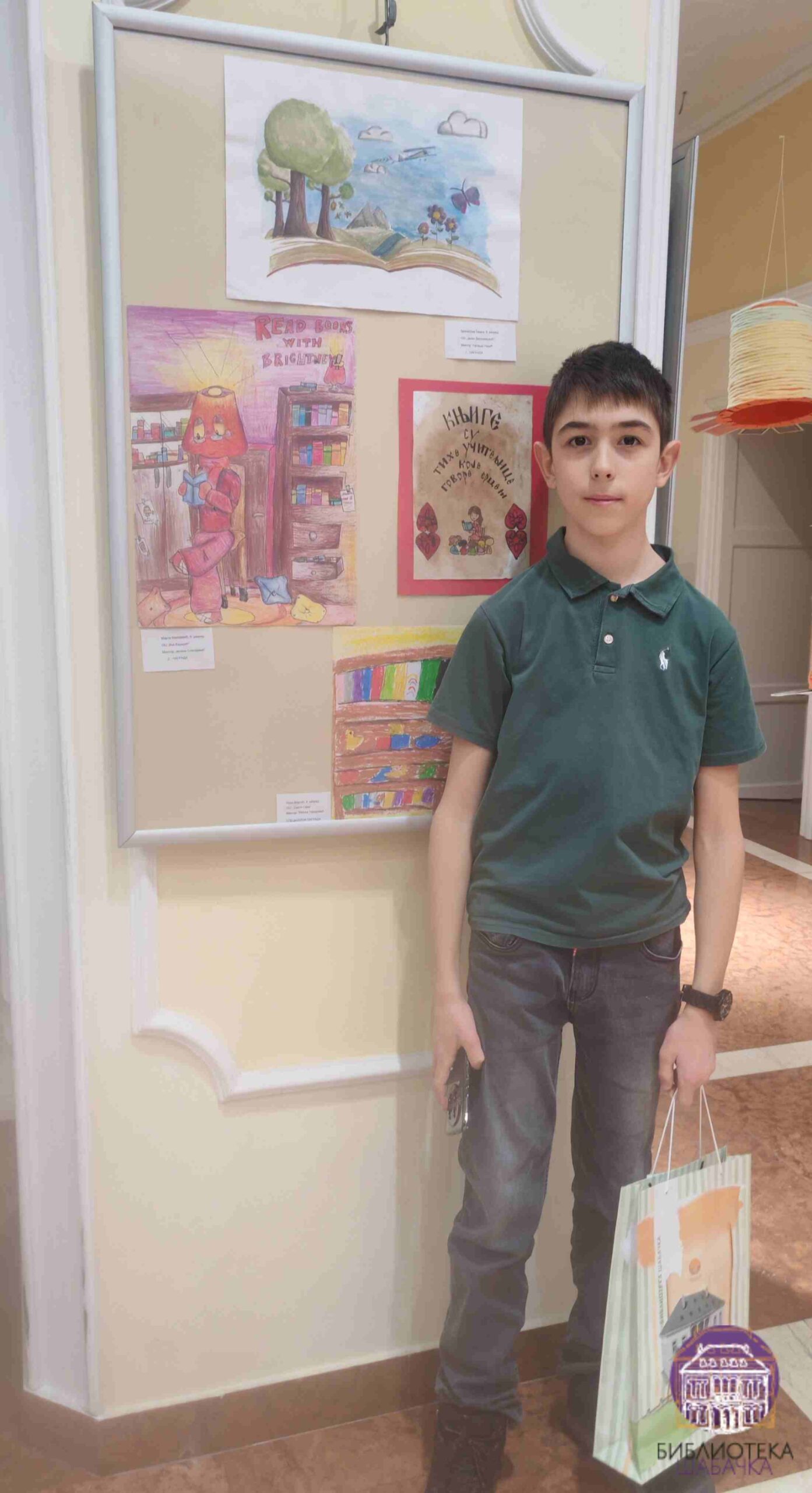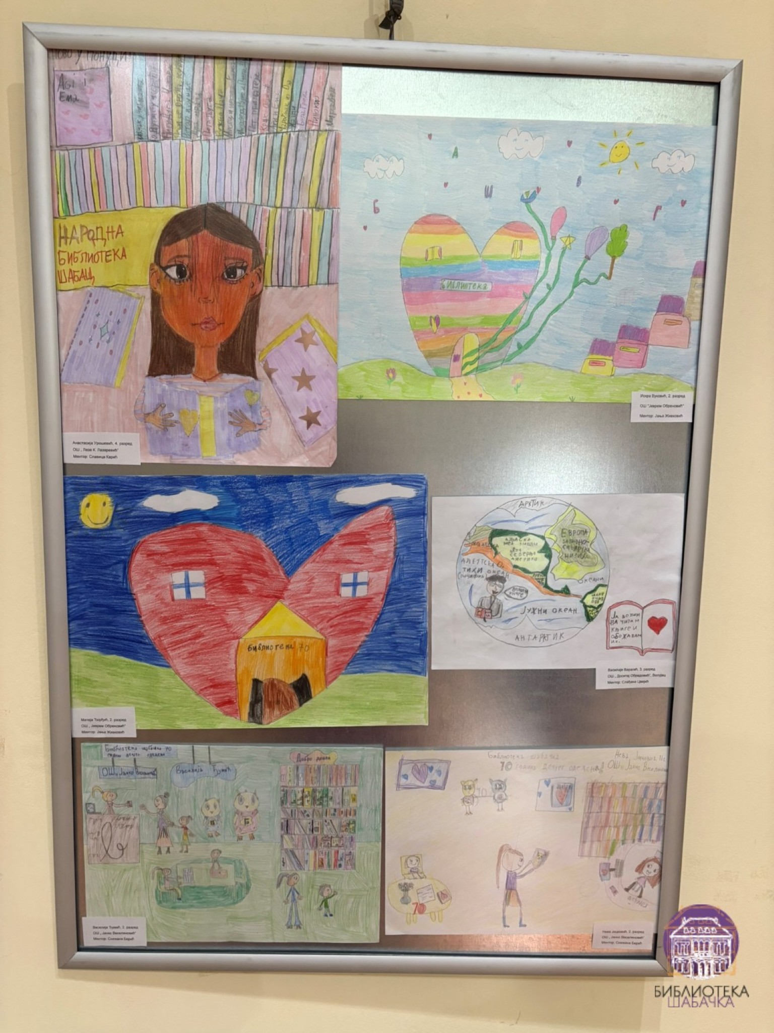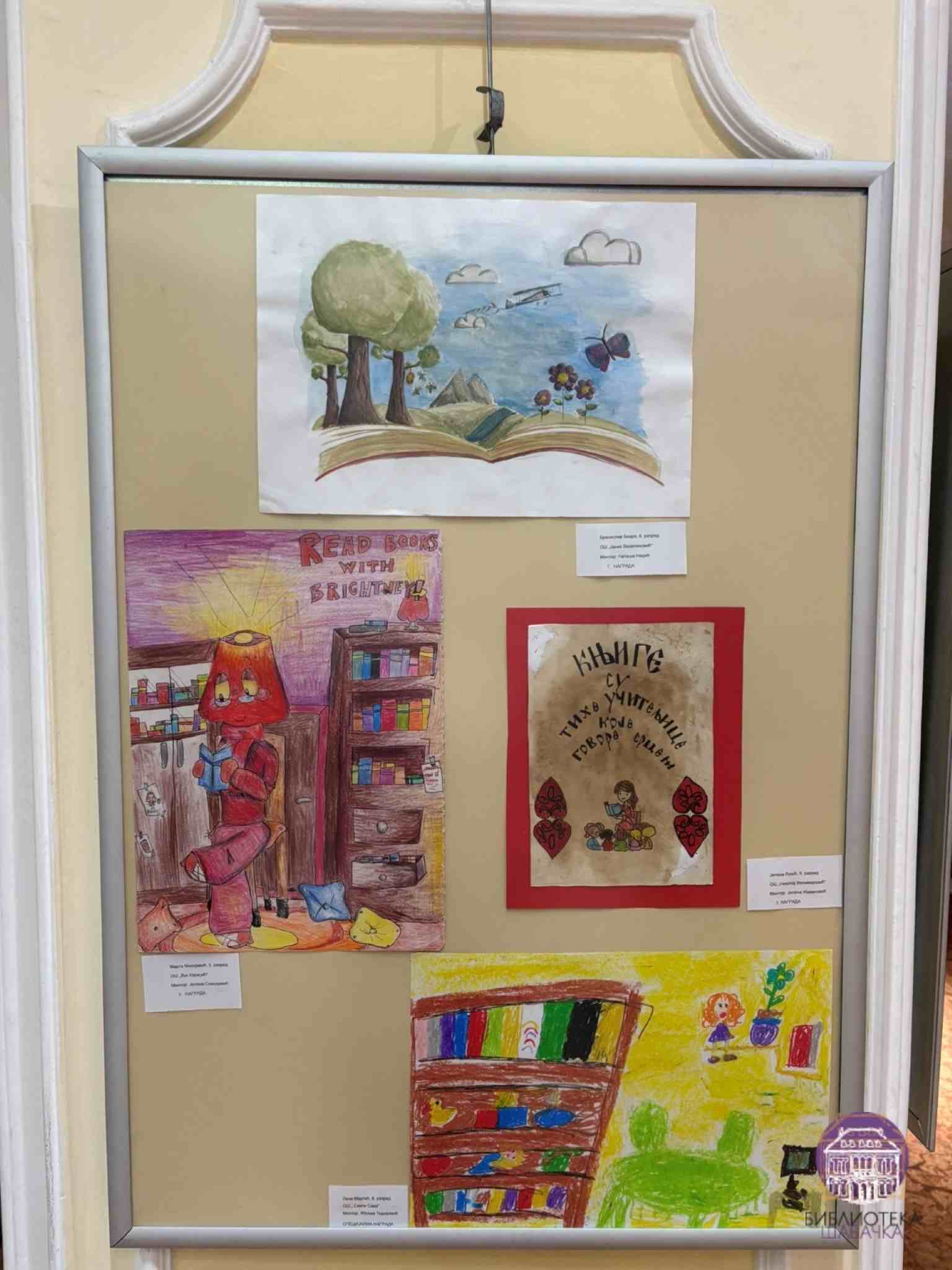 Изложба се састоји из два сегмента. Први чине радови са Ликовно-литерарног конкурса „Библиотека у срцу детињства“, на који је пристигло више од 250 радова. Жири је имао тежак задатак да одабере најуспешније, а награђени су: Лена Коларић за најбољи литерарни рад, Нађа Тадић, Љубица Гавриловић и Андреа Перић за ликовне радове у категорији млађег школског узраста, као и Бранислав Беара, Марта Милојевић и Јелена Лукић у категорији старијег основношколског узраста. Специјална награда додељена је Лени Мартић, ученици ОШ „Свети Сава“.