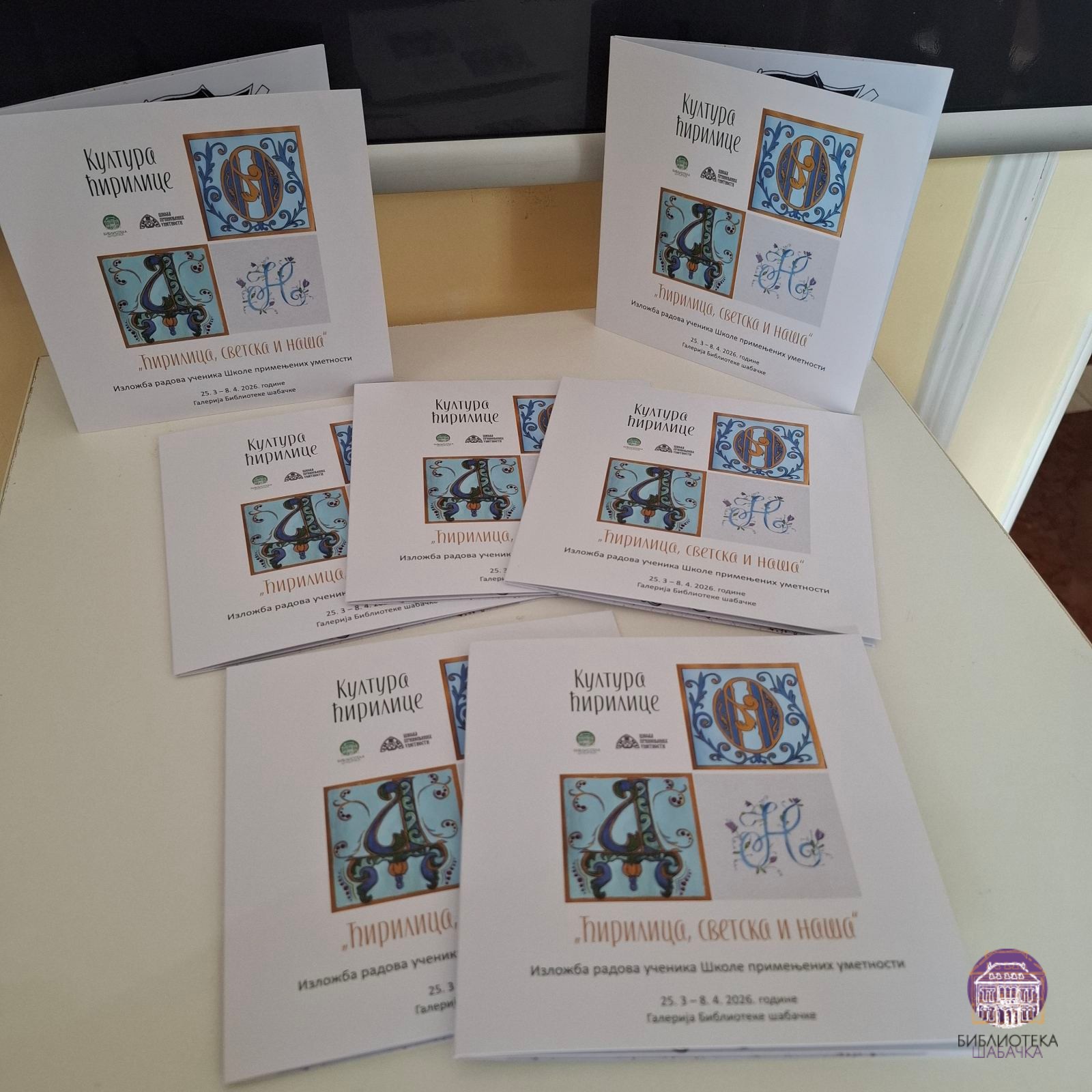 Процветала магнолија у дворишту Библиотеке шабачке „дочекала је“ многобројне Шапчане који су дошли на отварање изложбе „Ћирилица, светска и наша“, у оквиру Едиције „Култура ћирилице“. Већ 24 године успешно сарађујемо са ученицима и професорима Школе примењених уметности у Шапцу, који, поштујући тематику, стварају крајње оригиналне радове изведене на начин који одговара личном сензибилитету младих аутора. Инспирацију за своја дела ученици су пронашли у ћириличном писму и, уопште, потреби очувања писма као живог сведочанства прошлости, али и простора савременог уметничког израза. Поред Јелене Подгорац Јовановић, директорке Библиотеке шабачке, присутнима се обратила и Невенка Ђокић, директорка Школе примењених уметности.